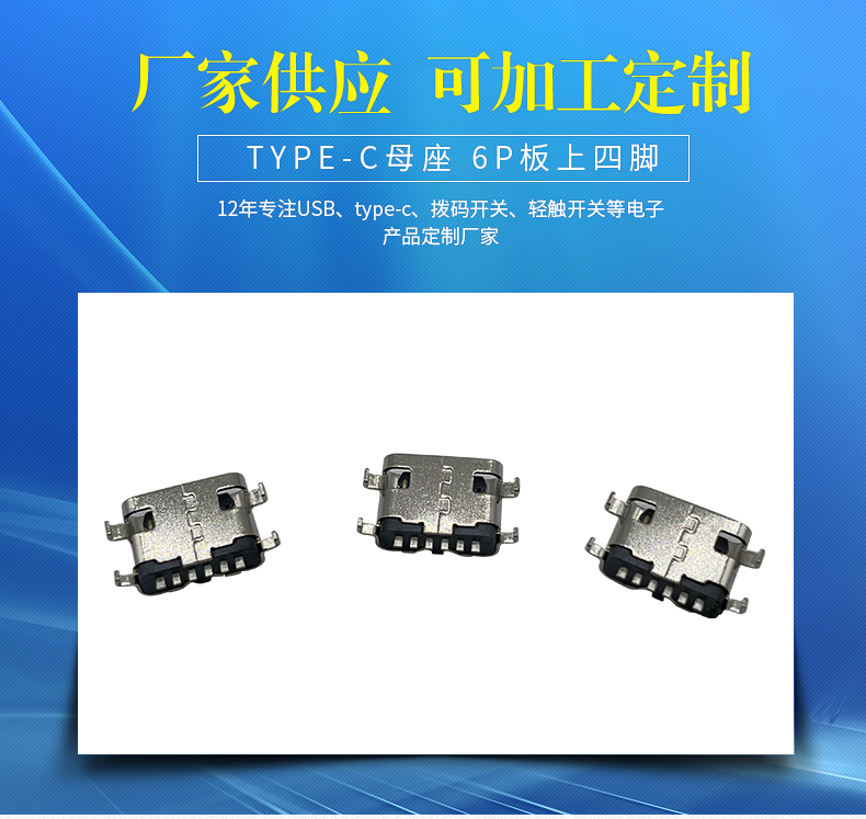 6P板上四脚Type-c母座