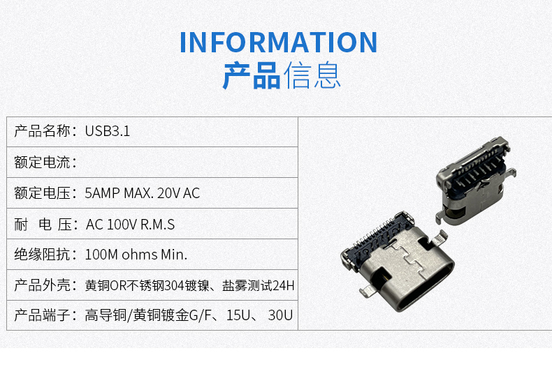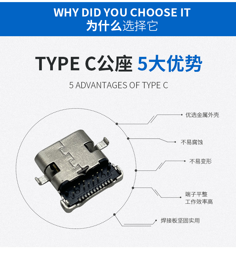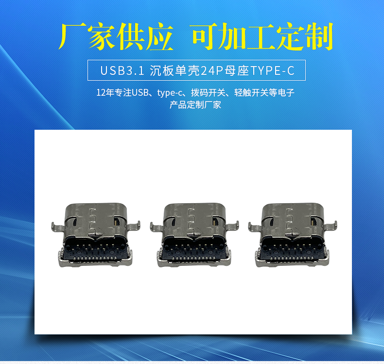 沉板单壳24P母座type-c母座